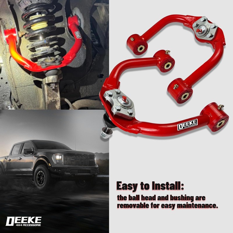 - Safety & Stability: The large ball position camber of the 1-4" Lift control arm bushings allows for precise adjustment, enhancing handling and cornering. This helps prevent premature tire wear, making it ideal for drift racing and off-road adventures. Grease application protects against wear under pivoting conditions and other situations that can lead to oil film loss.