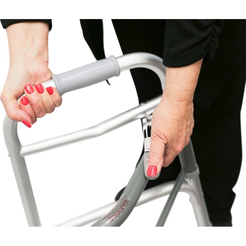- RUBBERIZED HAND GRIPS The deluxe two wheel walker is designed with special rubberized hand grips that are ribbed for your comfort and safety
