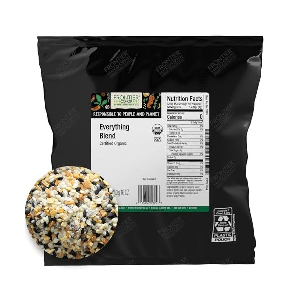 - EVERYTHING BLEND - Frontier Co-op Everything Blend takes the beloved savory flavors of garlic, salt, onion, and a medley of seeds to a whole new level, perfecting this trending blend that goes beyond bagels.