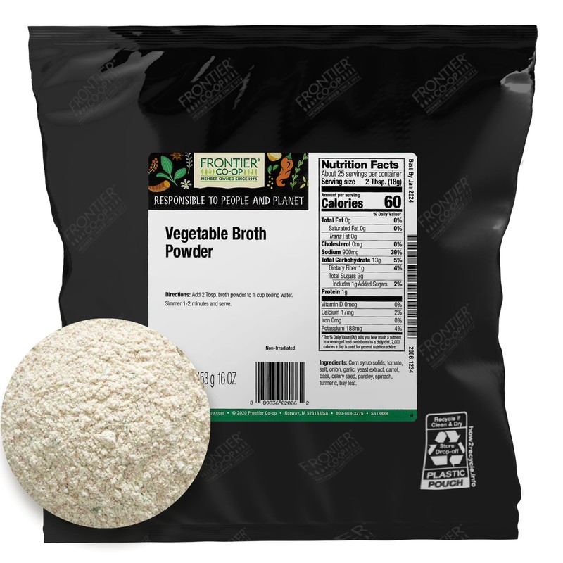 Frontier Co-op Vegetable Broth Powder, 1-Pound Bulk Bag, Broth, Soup Base, Gravy, Hot Drink, Kosher