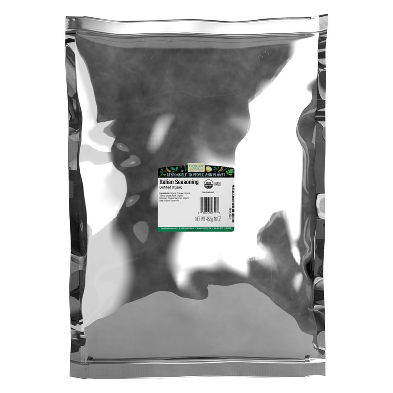 - ITALIAN SEASONING - Frontier Co-op Organic Italian Seasoning is a luscious blend of ground herbs. Italian seasoning enhances many savory Italian dishes, as well as other types of prepared foods. This blend is made from oregano, marjoram, thyme, rosemary, basil, and sage.