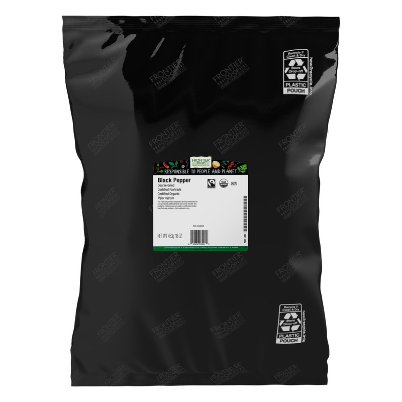 - BLACK PEPPER - Frontier Co-op Organic Coarse Grind Black Pepper is one of the most popular and beloved spices around the world. In the world of spices, black pepper is considered “black gold.” It lends satisfying heat and a good bite to most dishes. Frontier Co-op Black Pepper is organic, kosher, and Fair Trade Certified. No artificial chemicals are added.