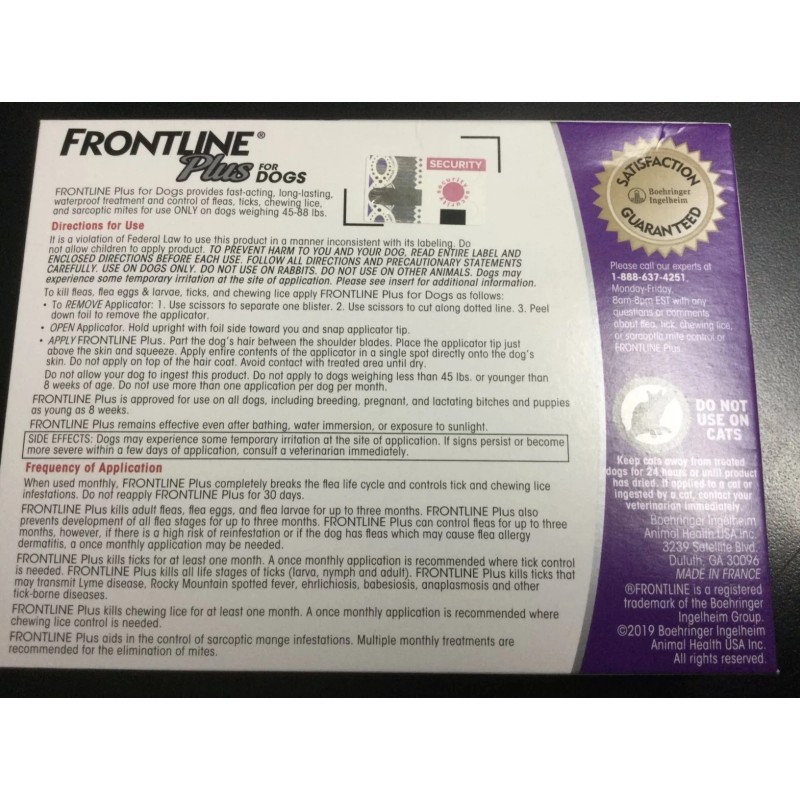 FRONTLINE Front Plus For Dogs 45 to 88 LBS 6 Doses 6 Month Supply Brand New Free shipping