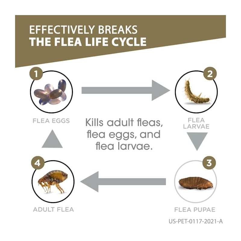 - Kills adult fleas, flea larvae, flea eggs and ticks