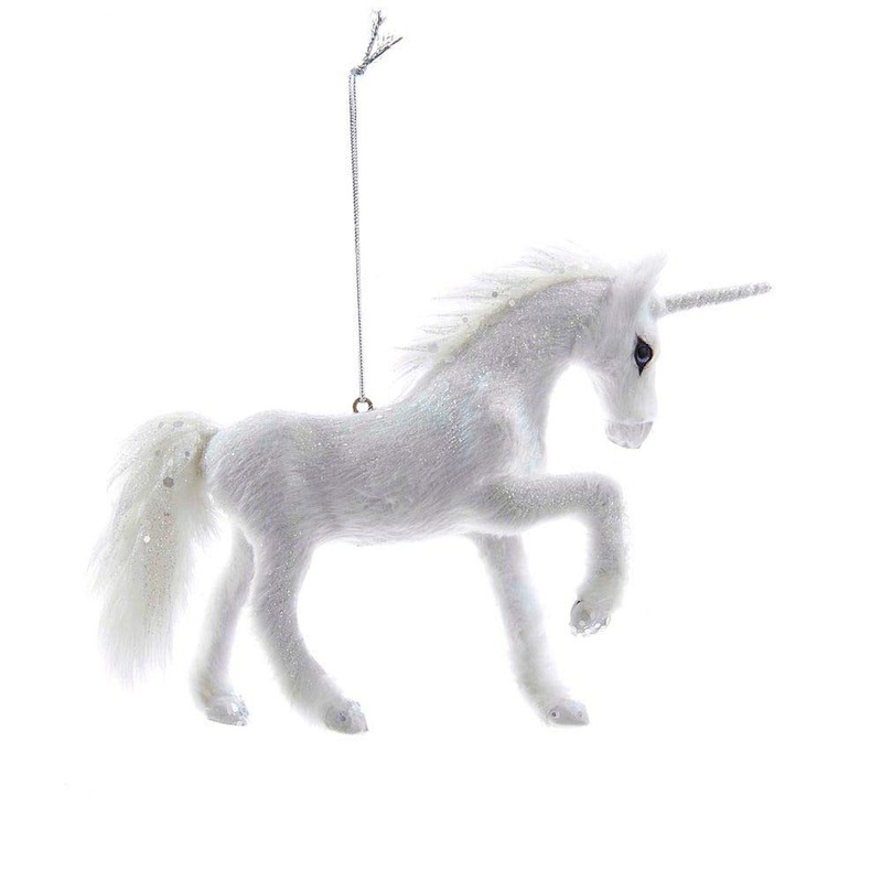 - Frosted Kingdom White Plush Glittered Unicorn Christmas Ornament