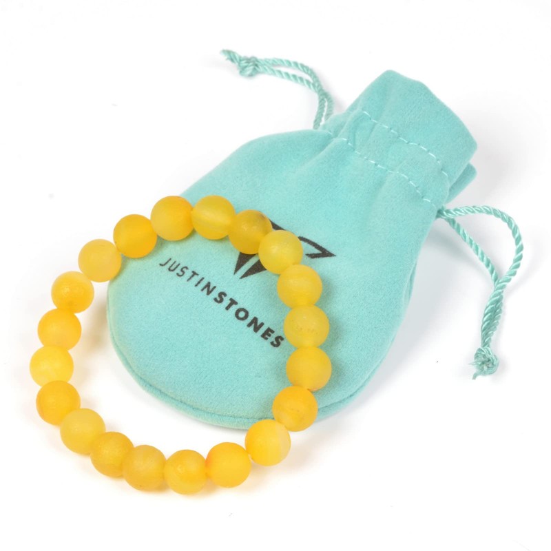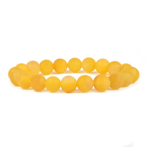Frosted Yellow Agate Gemstone 10mm Round Beads Stretch Bracelet 7 Inch Unisex