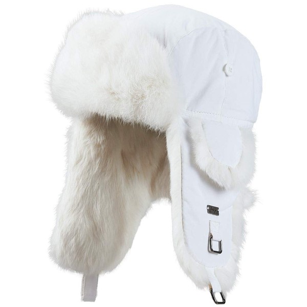 frr B-52 Aviator Hat with Natural White Rabbit Fur (S/M, White)
