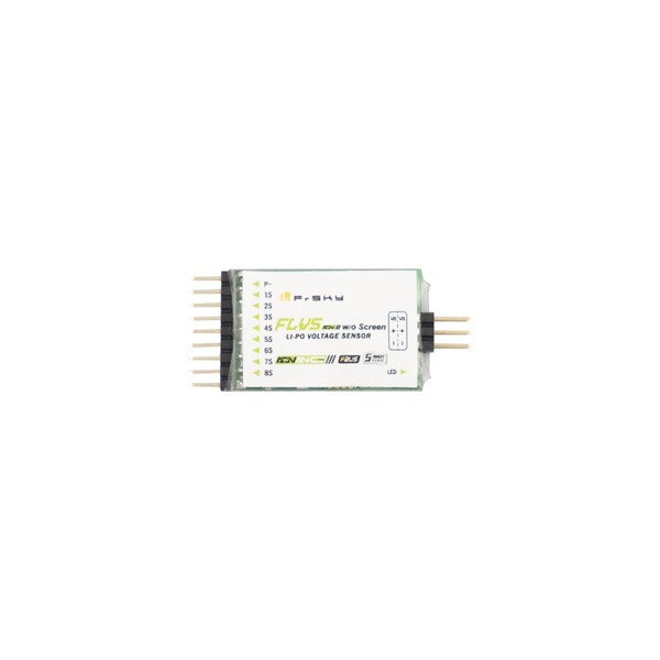 - El sensor de voltaje FLVS ADV puede medir el rango de voltaje para baterías Li-Po de 2S a 8S a resolución de voltaje de 0.01V con una pantalla OLED. Esta es una opción obvia para la medición precisa de baterías Li-Po con gran capacidad.