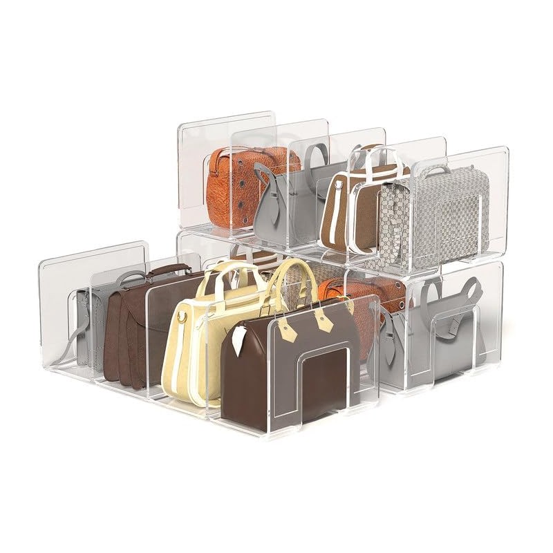 - Convenient Set: This bag organizer includes 2 clear or 4 clear plastic purse dividers for closets, closet organizer system allowing you to place them in various locations for organizing your bags. Each purse display stand can hold up to 4 wallets or bags, purse storage organizer providing a convenient way to keep your items in order