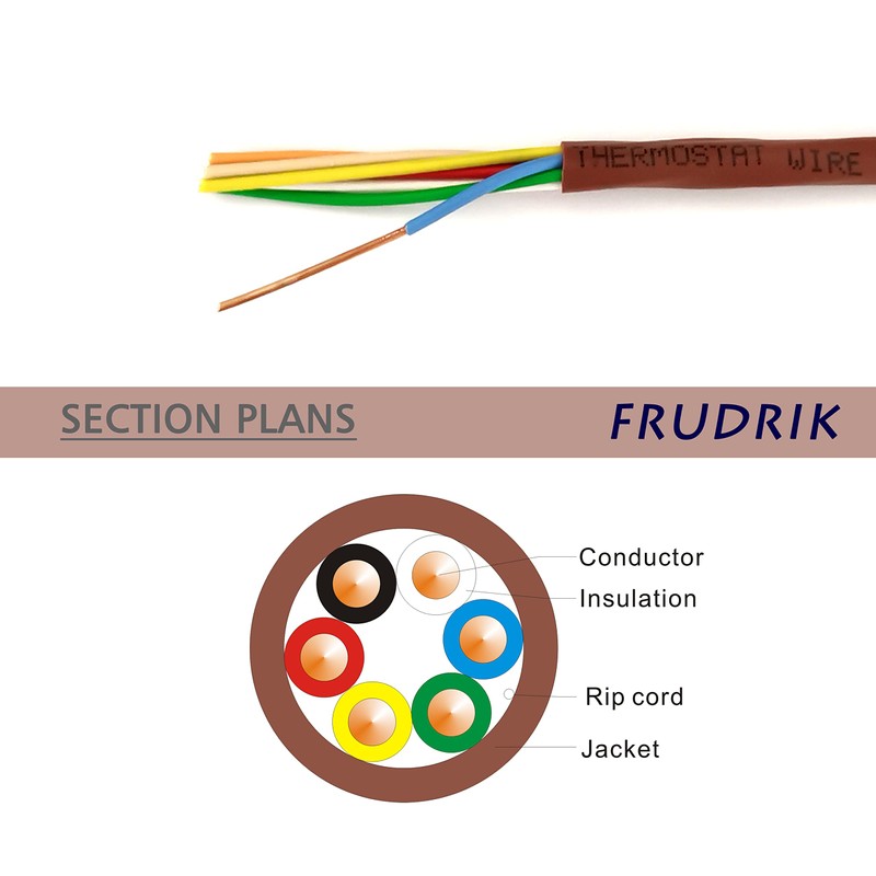 FRUDRIK Thermostat Wire - Solid Copper 18 Gauge - CL2- Power Circuit Cable (18/6Brown, 50ft)
