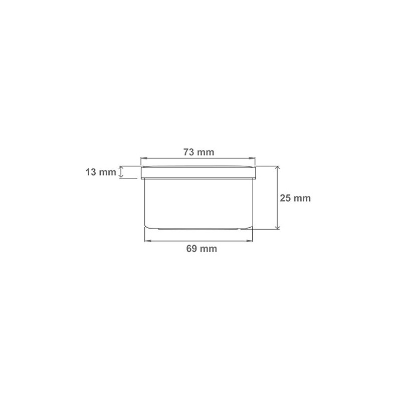 - Deckel: Durchmesser 73mm, Höhe 13mm