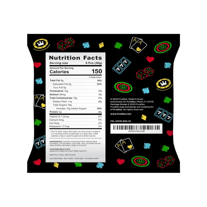 Fruidles Fruidles Casino Poker Chips, Belgian Milk Chocolate Coins, Kosher Certified Dairy, Non GMO (Pack of 25)