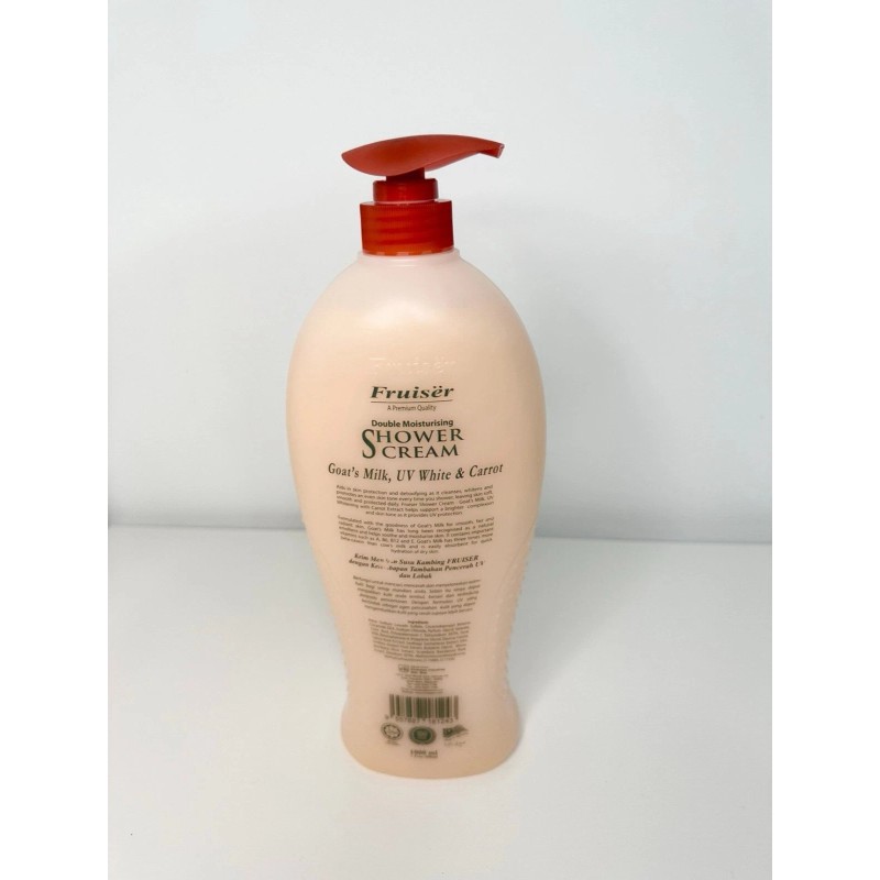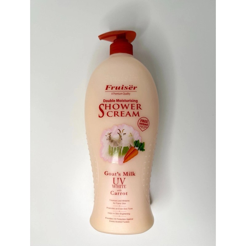 Fruiser double moisturizing shower cream cleanses and whitens for fairer skin.