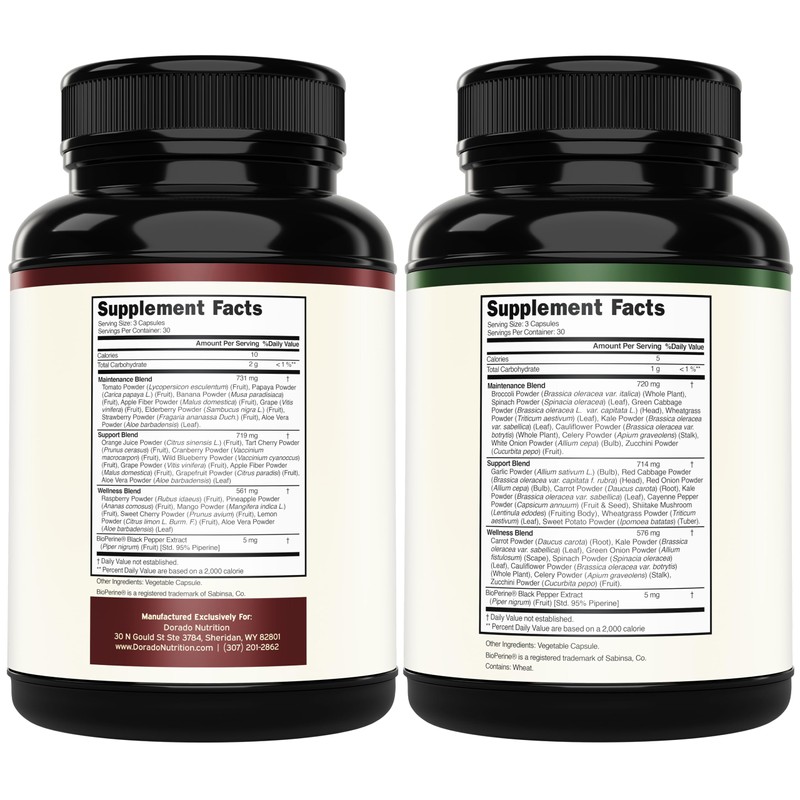 - Manufactured in the USA from Globally Sourced Ingredients - Dorado Nutrition is proudly a 100% American owned company creating jobs & better futures for all our employees & stakeholders. All of our supplements are manufactured in the USA! Our Super Food Fruit and Veggies capsules are made in the USA and safety tested for heavy metal and microbes in a state of the art facility.