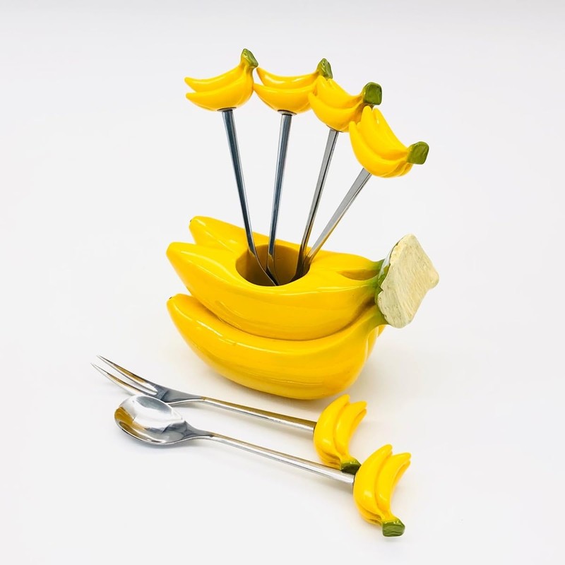 - Lifelike banana mold, set includes: 1 banana stand, 3 spoons, 3 forks
