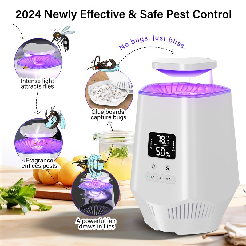 - 【Advanced, Safe & Highly Effective】 The fruit fly trap combines 365–395nm light, a powerful fan, and sticky glue boards to safely capture pests. Perfect as a fruit fly traps for indoors solution, this quiet bug zapper indoor keeps your space clean and safe for family and pets