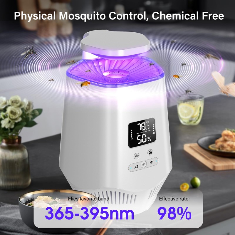 - 【Smart, Customizable Insect Control】Equipped with a smart chip and light sensor, this mosquito trap offers auto night mode and manual 24/7 settings. With 5 levels of brightness and fan speed, it’s ideal for use as a fly trap indoor, gnat trap, or mosquito zapper anywhere in your home