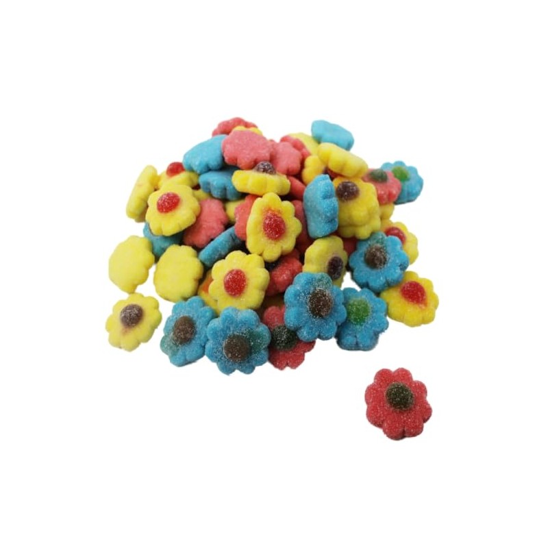 Fruit gum sugared flowers in various colours halal 175g fruit gum sugared flowers - 175g colourful snacking fun in halal quality. Discover the colourful world of our fruit gum flowers: each flower is a moment of pleasure - soft to the bite, fruity in taste and refined with a fine sugar crust. Made with Halal certified beef gelatin, they are ideal for anyone who wants to enjoy consciously.​