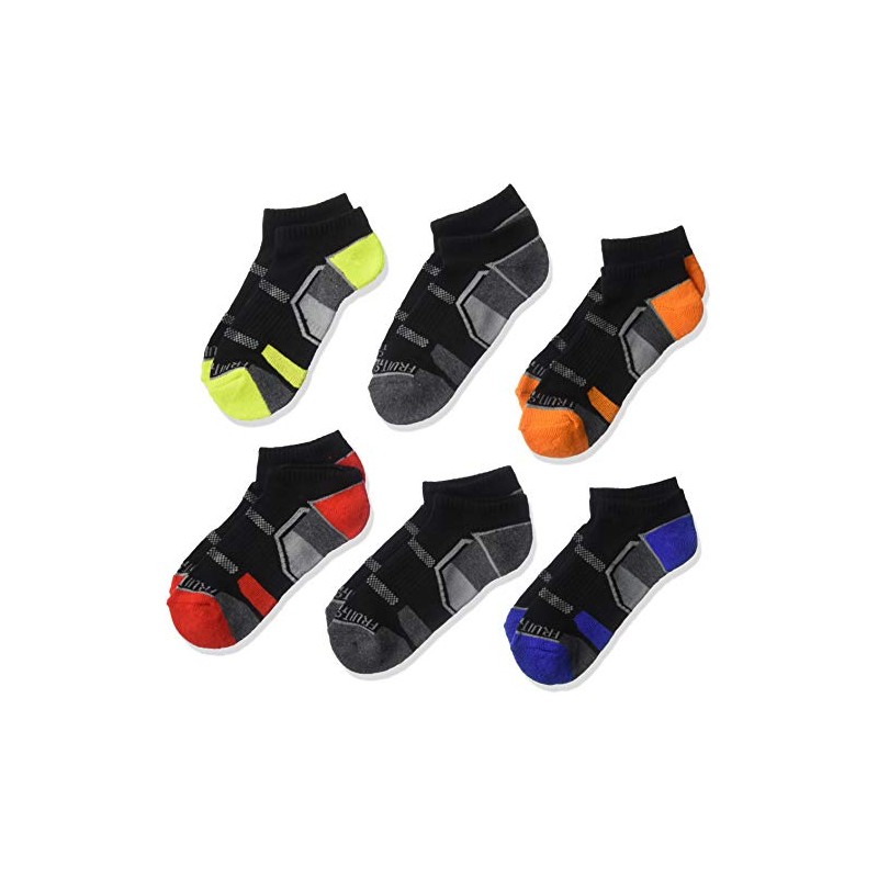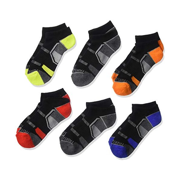 Fruit of the Loom Boys' 6 Pack No Show Everyday Active Socks (Medium (Shoe Size 9-2.5), Black Assorted)