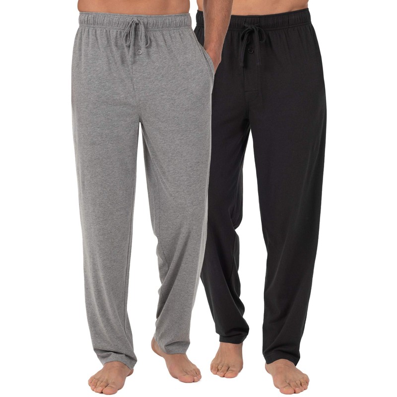 Fruit of the Loom Men's Extended Sizes Jersey Knit Sleep Pant (1 & 2 Packs)Ebony/Ashed Heather, 2XL Tall