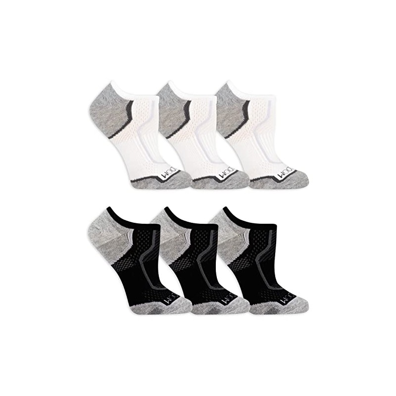 Fruit of the Loom Women Lightweight CoolZone No Show Socks (6 Pack), White/Black Assortment, 8-12