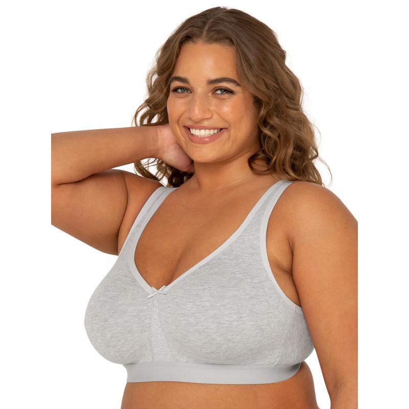 Fruit of the Loom Women's Plus Size Wireless Cotton Bra Full Coverage, Opaque, Grey, 44D