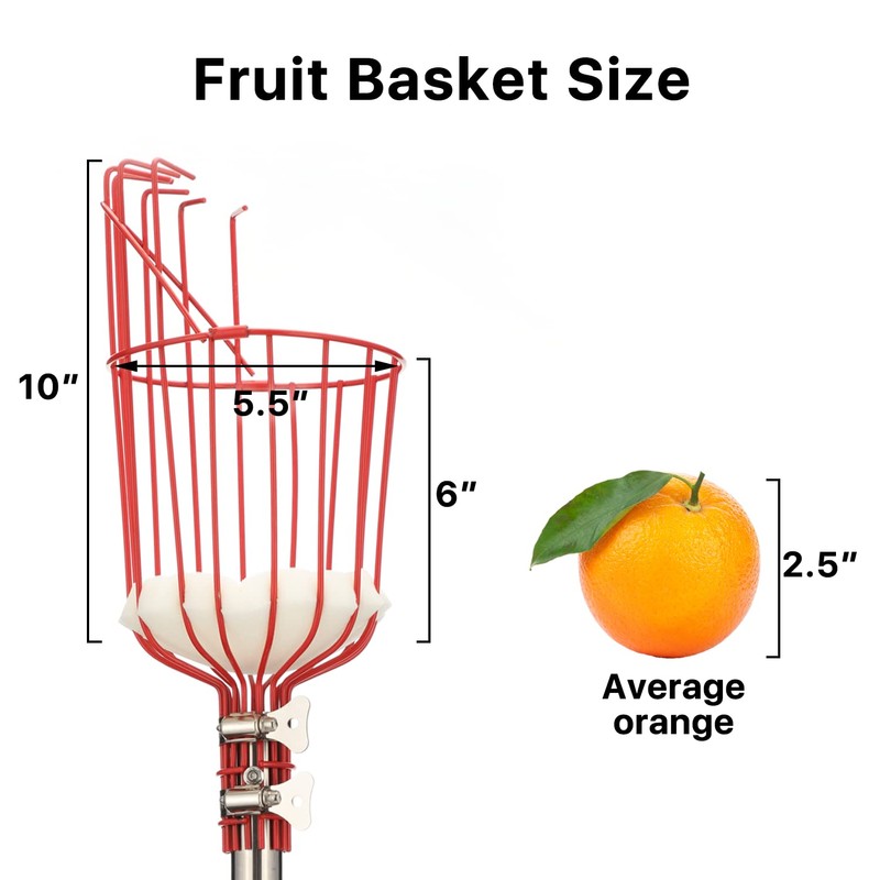 • Multi-Use: The fruit picker with the basket is fit for the most kinds of fruit trees - apple, orange, avocado, apricot, mango, lemon, kiwi, papaya, limes, nectarines, grapefruit, pears, plums, and more!