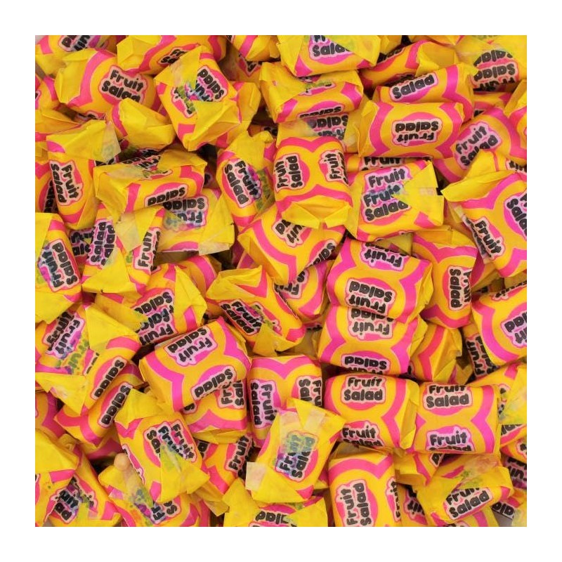 Fruit Salad Chews and of course their close friend, Black Jacks, continue to be popular sweets today as they have been for some generations now. Fruit Salad Chews provide a sweet raspberry and pineapple taste that lingers whilst you chew!