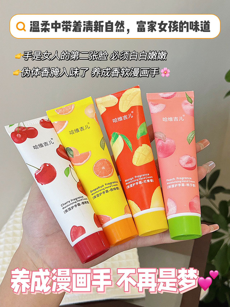 🍊 Indulge your hands with a burst of delightful fruit fragrances. Our hand cream transforms your daily routine into a sweet escape, leaving your skin feeling refreshed and subtly perfumed.