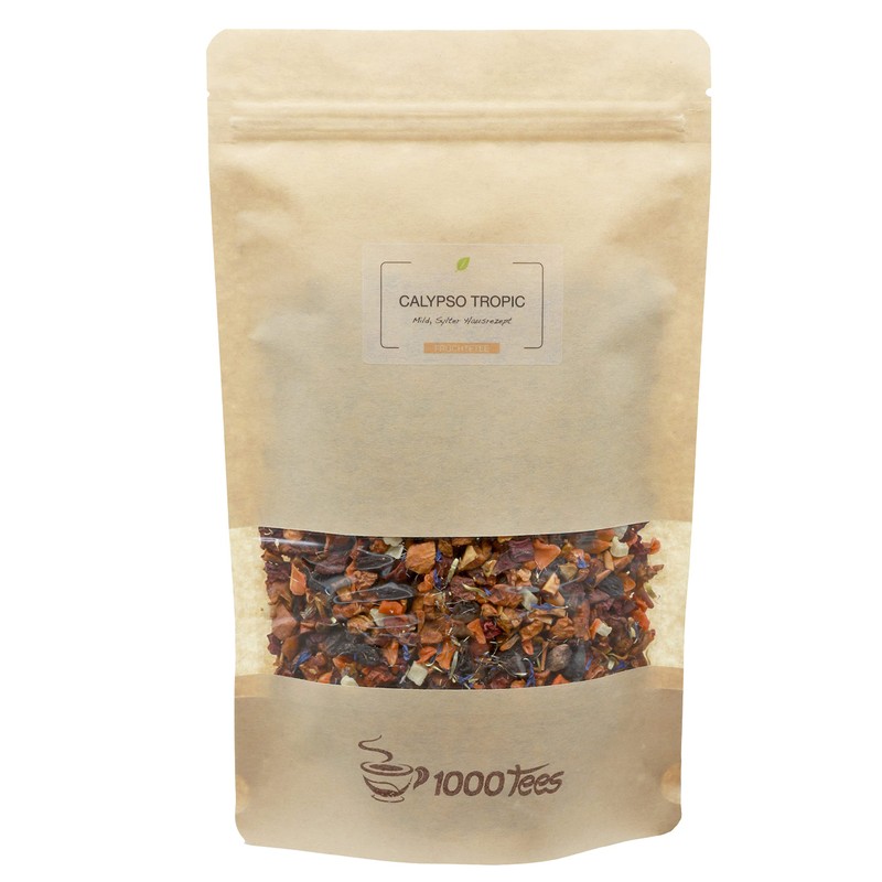 If a luxury summer holiday had a taste, then it would probably be this one! The Calypso Tropic fruit tastes wonderfully sweet of ripe pineapple and puts you in the holiday mood. Sun, palm trees, white sandy beaches and turquoise blue sea – all these images will light up before your mental eye alone with the scent of this tea. So that this exotic fruit tea can fully develop its aroma, the sweetness of the pineapple is contrasted by the light fruit acidity of apple and wine berries and thus comes into its own. The Calypso Tropic can be drunk not only warm, but also cold - and is even suitable as a base for delicious cocktails or as a healthier alternative to juice spritzers.
