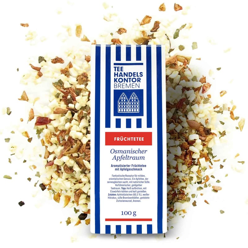 - Incredibly full, intense, green apple taste made from small, approximately two mm apple cubes, harmoniously complemented with naturally sweet blackberry leaves. A delicacy from TEE HANDELSKONTOR BREMEN.