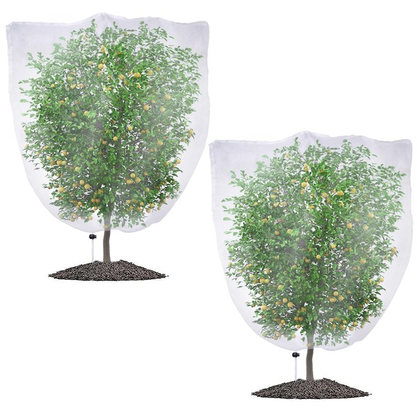 Fruit Tree Netting Bags with Drawstring, Insect Bird Netting Pest Barrier for Garden Protection, Blueberry Bushes Netting Cover for Protect Plant Flower from Cicadas Bug (6.6 x 5.9 FT - 2 Pack)