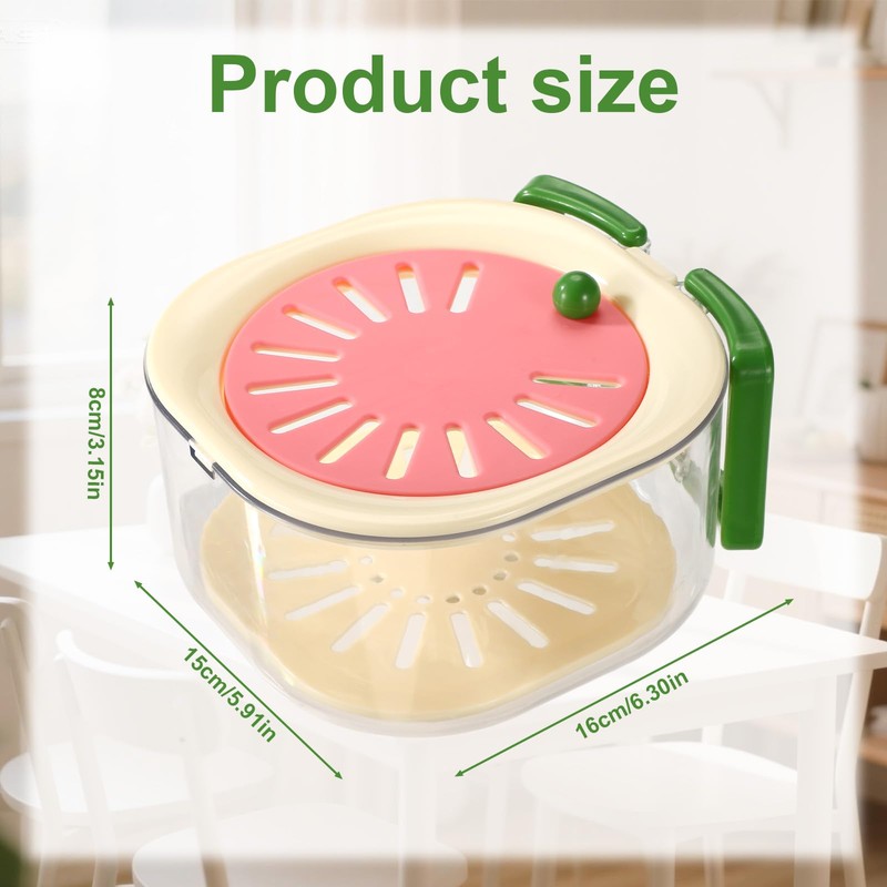 - Special Design: We designed the vegetable washer that resembles a watermelon, which may make your life more fun. Additionally, it has a translucent storage box that makes it easy to view what's within, a secret handle that widens its mouth, and a fine drain strip to stop fruit from seeping out.