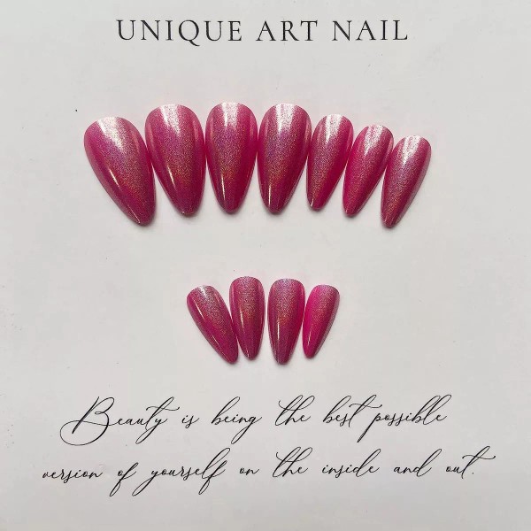 Juego completoEste kit de 24 piezas incluye todo lo que necesitas para lograr una impresionante manicura, incluyendo uñas postizas, gel de gelatina de uñas, una mini lima de uñas y un removedor de uñas postizas. Con 12 tamaños diferentes de uñas a presión, seguro que encontrarás el ajuste perfecto.; Diseño eleganteEstas cubiertas de uñas postizas cuentan con un impresionante diseño láser y ojo de gato, incluyendo azul láser, rosa láser, morado láser, blanco ojo de gato, color carne de ojo de gato y rosa ojo de gato. Elige el color que mejor coincida con tu atuendo para elevar tu estilo y añadir un toque de elegancia.; Fácil aplicaciónEstas uñas a presión son increíblemente fáciles de usar. Simplemente elige el tamaño correcto, aplica pegamento de uñas o cinta adhesiva de doble cara y presiona durante 30 segundos. No hay necesidad de esmalte de gel o esmalte de uñas para lograr una manicura hermosa y duradera.; Regalo perfectoEste juego de uñas postizas de ojo de gato es un regalo perfecto para cualquier mujer en tu vida, ya sea tu novia, esposa o hija. Es ideal para fiestas, bailes, citas e incluso día de San Valentín.; Nota: debido a las restricciones de transporte, el paquete no contiene pegamento. Mientras que la goma de mascar incluida es duradera, recomendamos utilizar tu propio pegamento para una máxima sujeción. Todos nuestros productos estan en inglés SKU 230623000582