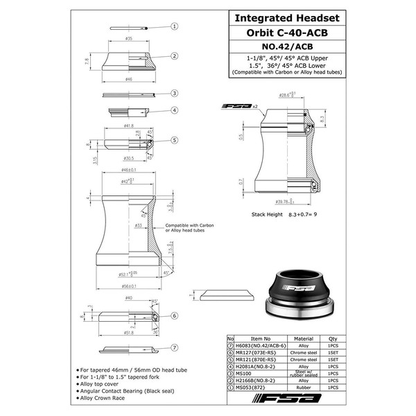 - 1.5in 36 degrees/ 45 degrees ACB Lower (compatible with carbon or alloy headtubes)