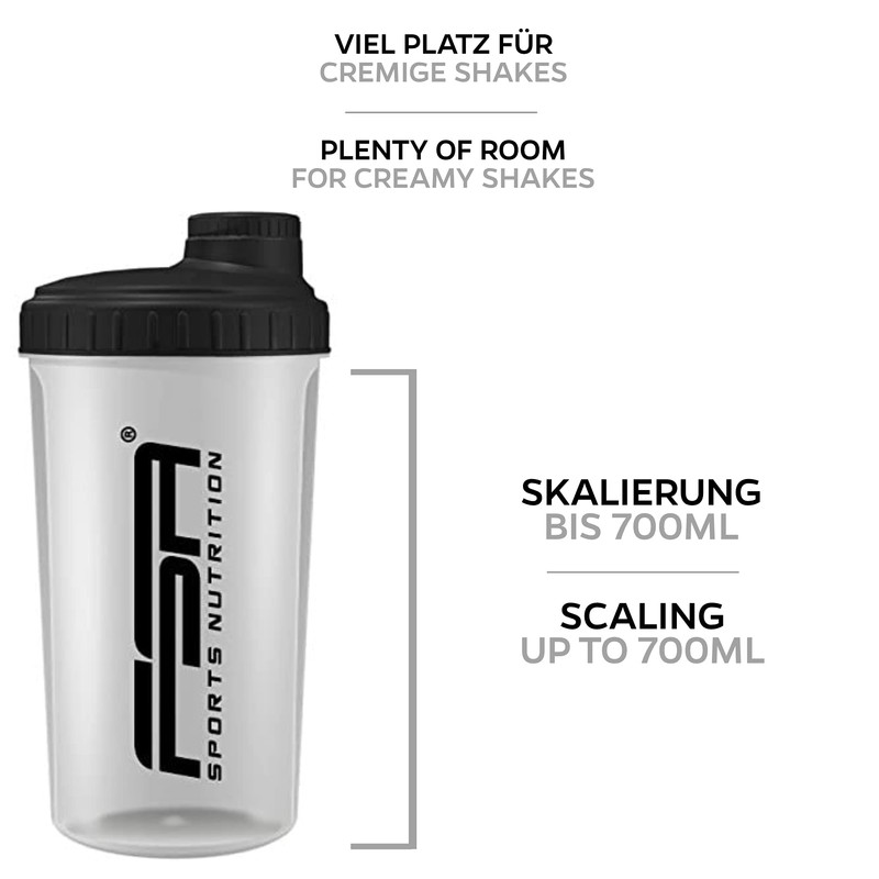 FSA Nutrition Protein Shaker 700 ml with Measuring Scale and Screw Cap, for Diet and Protein Shakes, BPA Free . transparent