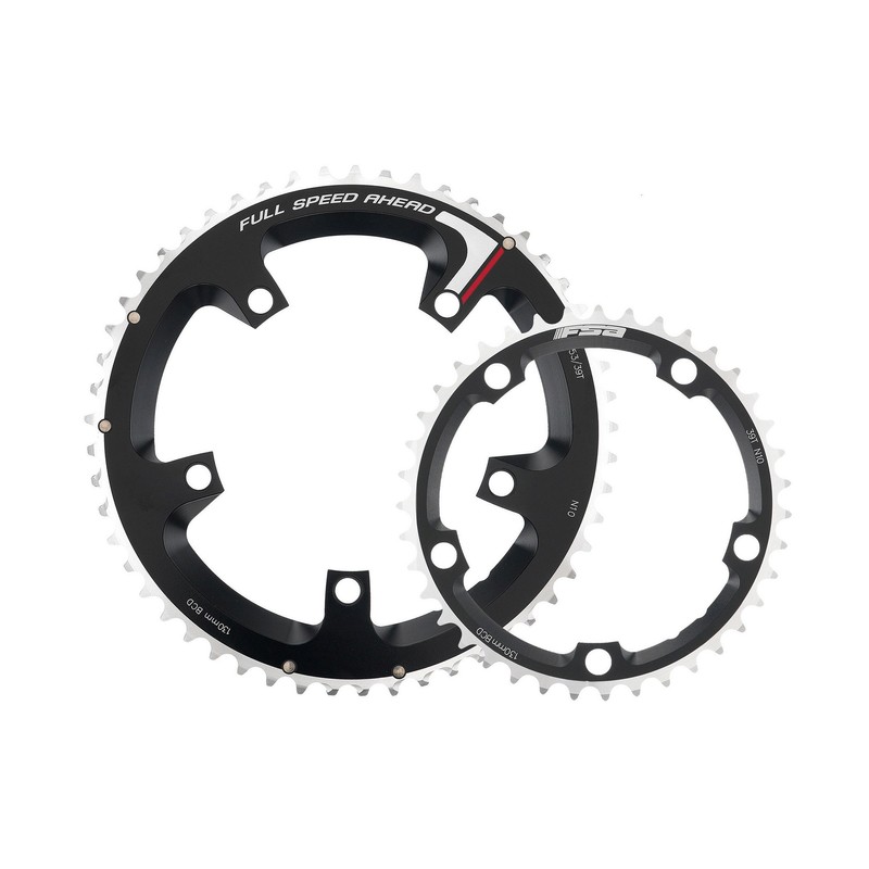 The FSA Super Road Chainring offers a CNC-machined aluminium 7075-T6 alloy design with additional material at the point of interface between ring and spider to give riders explosive acceleration in a climb. Precision CNC machined A7075T6. Shifting ramps and stainless steel pins for outer and middle rings. Black anodised with CNC details. Laser etched logos. Shimano 10 speed. 110BCD. 34T. Titanium.