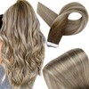 Fshine Blonde Tape In Ombre Hair Extension 20 Pcs Pu Hair Glue In Extensions Color 3 Fading To 6 And 22 Double Sided Tape Hair Extensions Human Hair 50 Gram
