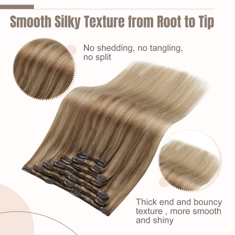 - Sturdy and stable and stylish: The double weft human hair extensions clip is durable and will not loose, the clip is firmly sewn together. It can be reinforced, curled, dyed, etc. Can be used for change on different occasions such as weddings, etc. When curling or straightening, please keep the temperature below 150 degrees.