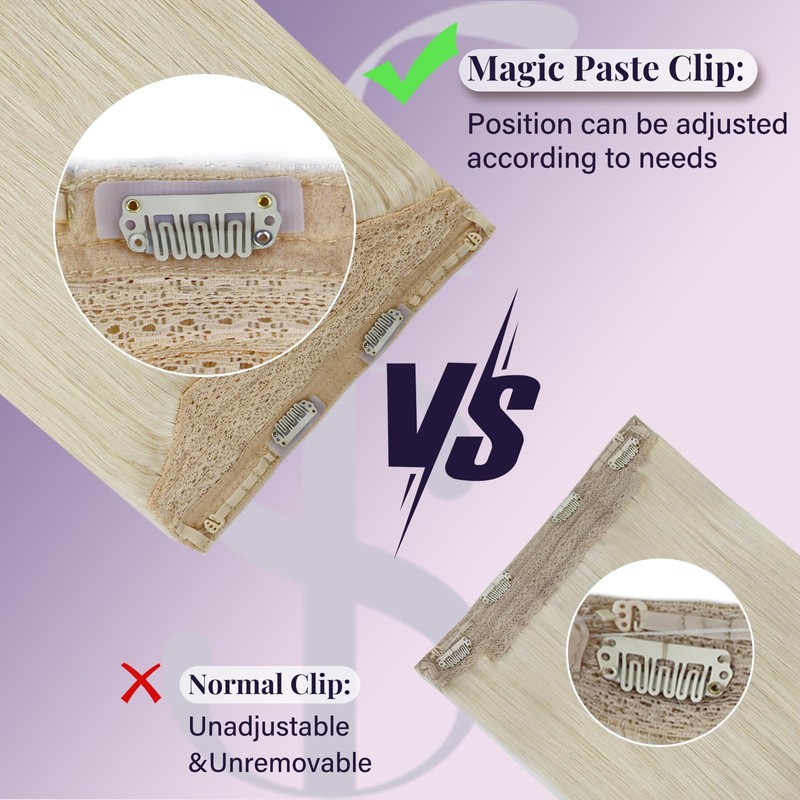 The unique is Hidden Wire hair extensions real human hair feature an invisible, adjustable wire that effortlessly sits on top of your head, blending with your own hairline.