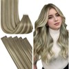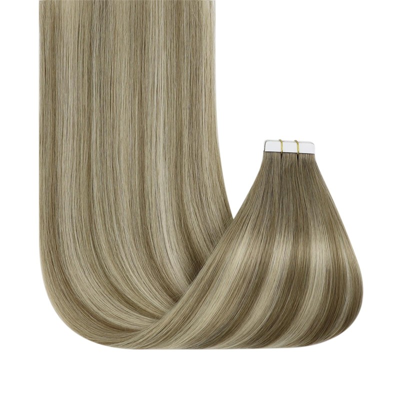 Fshine Tape-In Remy Hair Extensions, 50 g, Skin Weft Tape Hair Extensions, 45 cm, Darkest Brown Fading to Ash Blonde and Platinum Blonde, Tape-In Extensions, 20 Pieces, #19/8/60