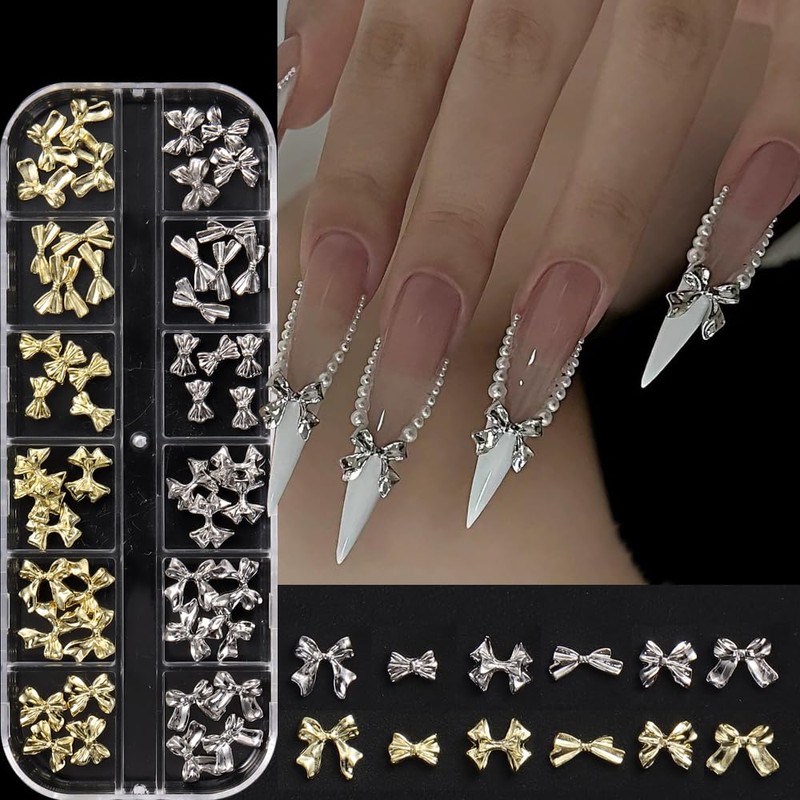 - 【About Package】You will get 1box of 12grids 3D Metal Bow Knot Nails Decoration Kit,including different 6styles of golden and silver alloy bow-knot.