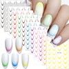 FSpronail Ombre French Tip Nail Stickers 12 Sheets 3D Line French Manicure Stickers for Nails Colorful Curved Gradient French Nail Decals French Tip Guides Stencils Pegatinas para uñas
