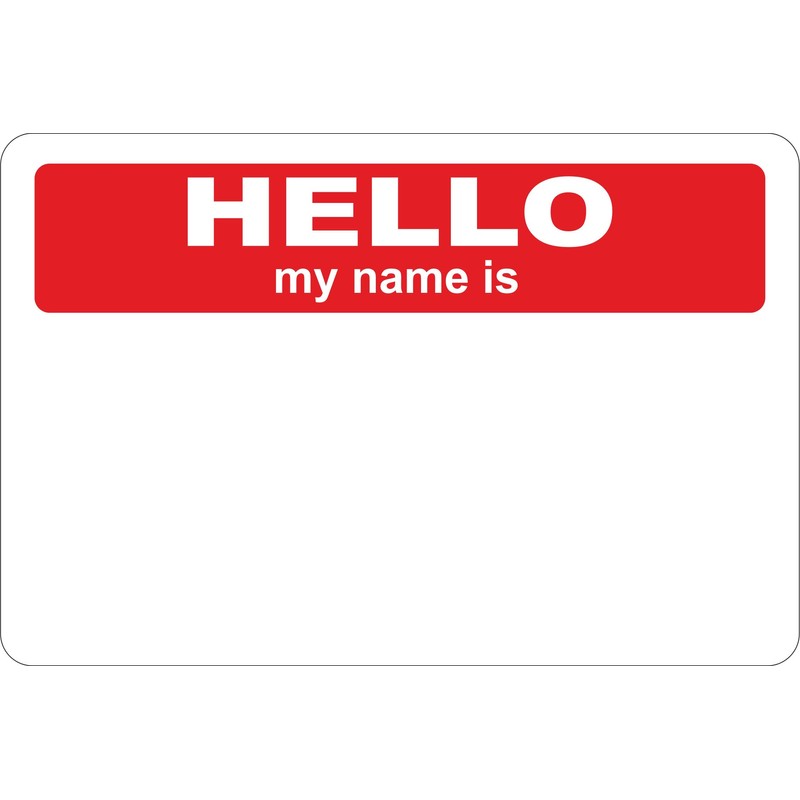 - Red Hello my name is stickers x 100. 75 x 50mm
