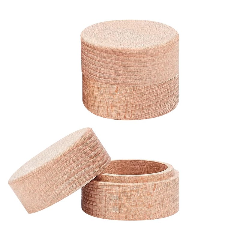 FSSTUD 2 Pcs Round Wooden Ring Box Wood Proposal Ring Holder Mini Earring Gift Box Wood Engagement Ring Holders Wedding Ring Jewelry Boxes Small Storage Container Case for DIY Names
