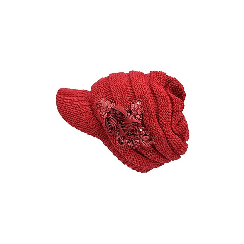 FSSTUD Women's Winter Warm Knitted Knitted Beanie Hat with Peak Cap, red