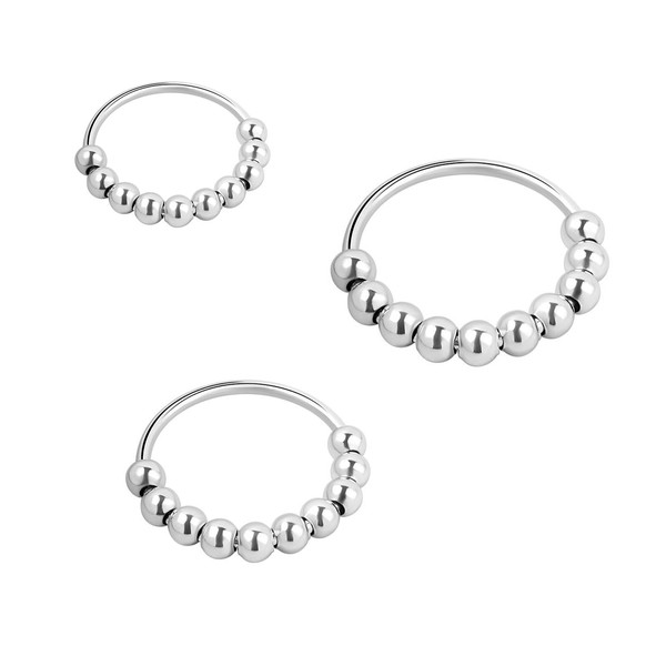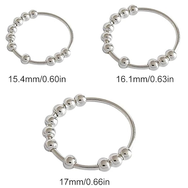 - Anxiety rings: 3 rotating anxiety rings in different sizes. Pearl rings for women, pearl rings for women, adjustable, fits all fingers, small approx. 1.4 cm, medium approx. 1.6 cm, large approx. 1.8 cm. Allows you to use a ring that rotates on multiple fingers.