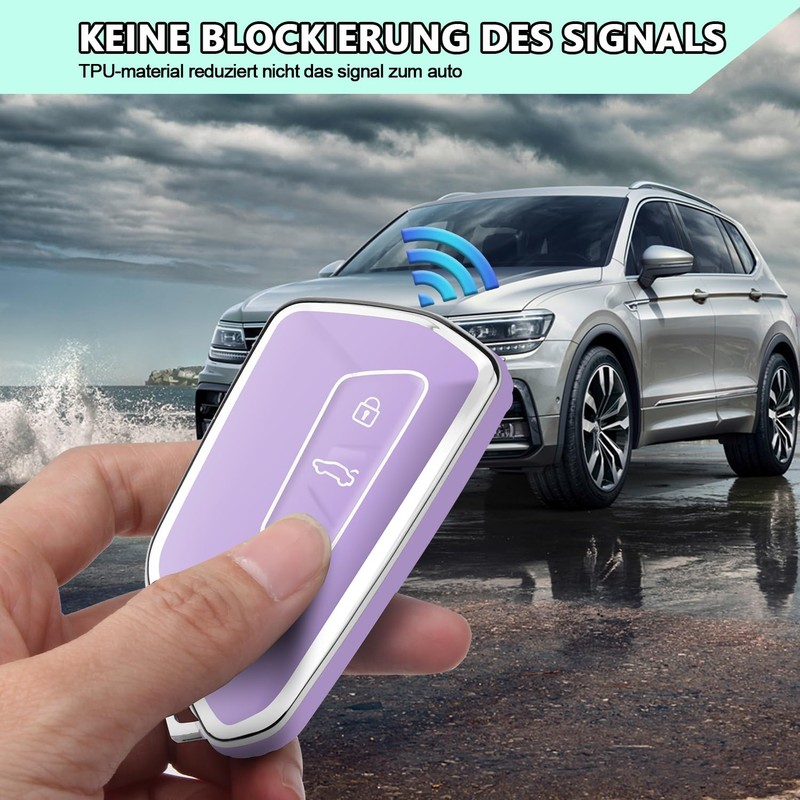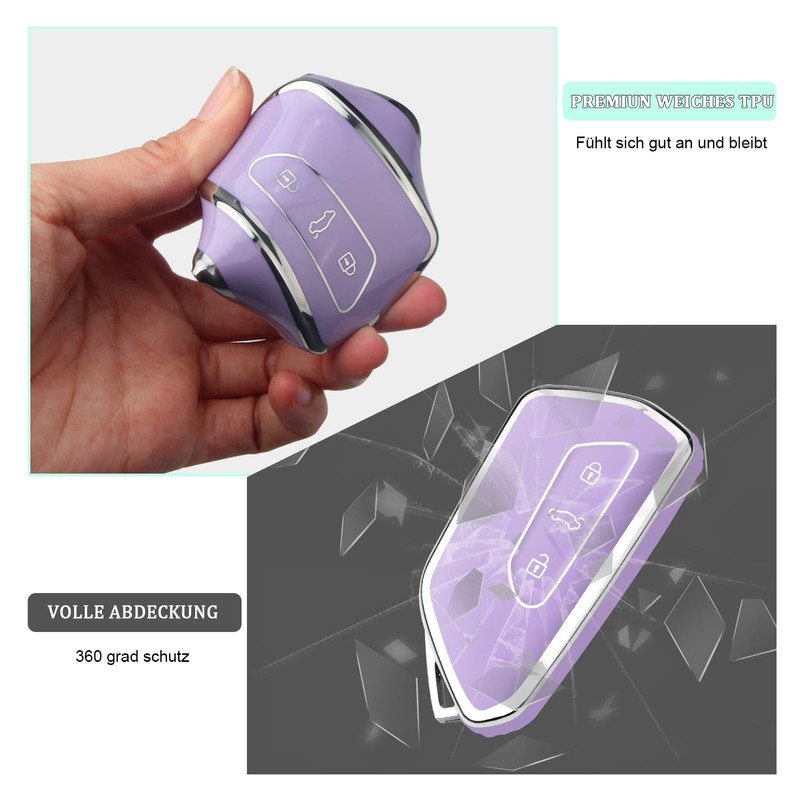 FT FUNTOR FT FUNTOR Autoschlssel Hlle fr VW,3 Tasten TPU fr Golf 8 Schlsselhlle,Kompatibel mit VW Golf 8 ID.3 ID.4 Seat Leon Seat Tarraco Seat Ateca Formentor mit Silbernem Rand (B-Lila)