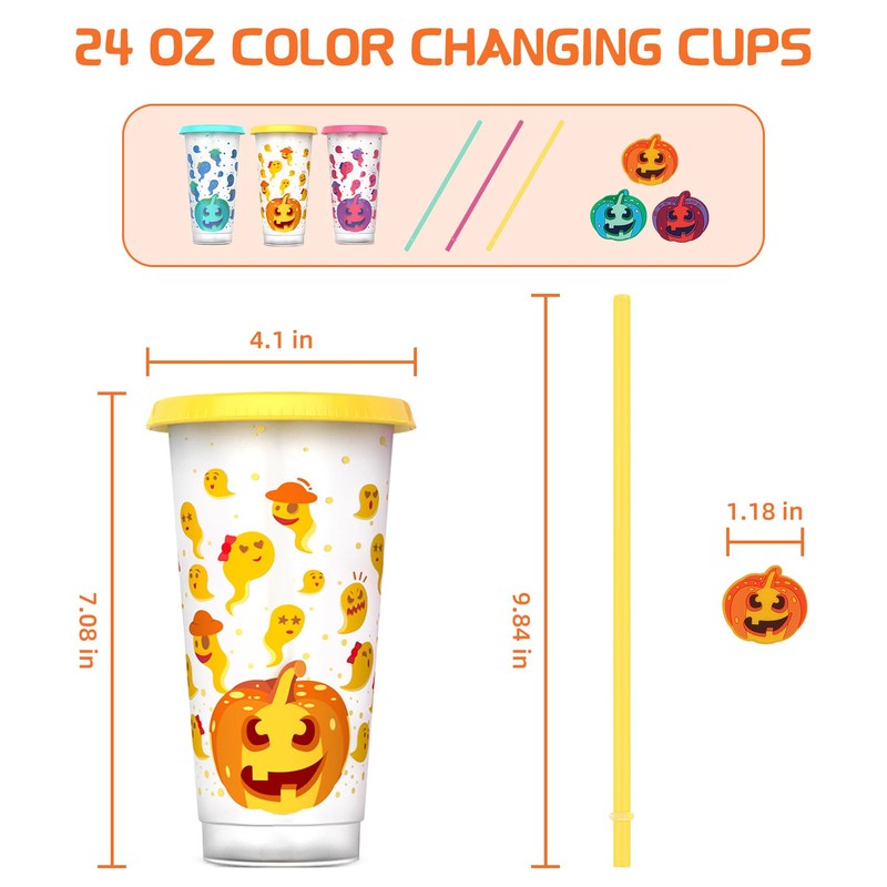 • 🥤 Appropriate Gifts - Our cute plastic color changing cups are a ideal gift for Halloween, Birthday, party favor. And it's travel friendly design, easy to bring them for travel or where you go.