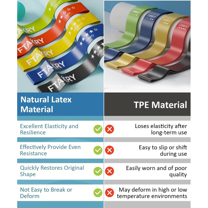 - 【Premium Material】The exercise bands are made of high-quality natural latex, which has excellent elasticity and resilience, allowing it to effectively provide even resistance and quickly return to its original shape after use.